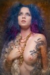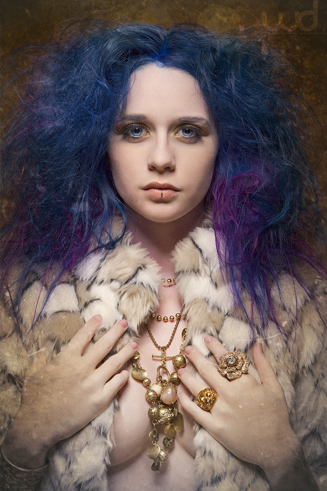 We shot this wonderful series where I was wearing this super soft furry coat, lots of jingly jewellery, fluffy hair, and panty hose. And in post he edited this crazy dragon tattoo onto my body! It kind of moves around from one picture to another. š