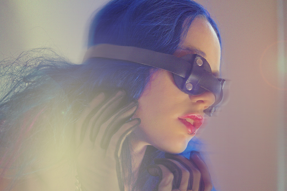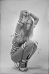 For the last set he had these great bright purple panty hose and bright blue rope that matched my hair. We did too different “looks” for this one. He did some amazingly complicated rope bondage ties on me, and added a fan for my hair! I got to wear another pair of really crazy fetish heels, so It was difficult to keep my balance, but I think the shots look great. William, his assistant, and my boyfriend kept watching to catch me if I fell, lol. So many laughs!