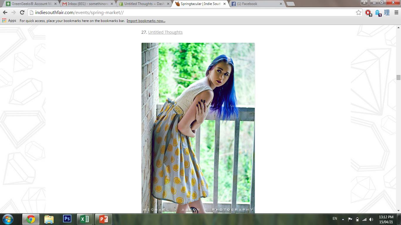 Indie South Fair’s Springtacular Posted by Chelsea Christian on May 19, 2015 Posted in: Uncategorized. A photo of me by Michael Aaron Photography was used to promoteUntitled Thoughts selling her designs at Indie South Fair’s Springtacular event in Athens, GA Share! Click to share on Facebook (Opens in new window) Facebook Click to share on Tumblr (Opens in new window) Tumblr Click to share on X (Opens in new window) X Click to share on Pinterest (Opens in new window) Pinterest Click to email a link to a friend (Opens in new window) Email Like Loading... Related Posts navigation ← The Market Street Revue Father Sebastiaan →